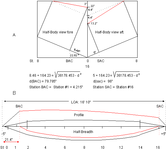 See figure 3-1. On the sheer line in the half-Body view of figure 3-3 that