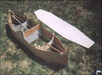 shows the stern bent more than the bow. That was done by soaking the back ends of the plywood in a rain barrel for a week to