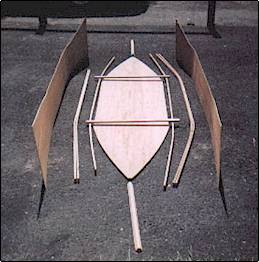 measured and the radius of curvature calculated. To make one of these boats of lauan underlay draw a 2x3 ft rectangle in the