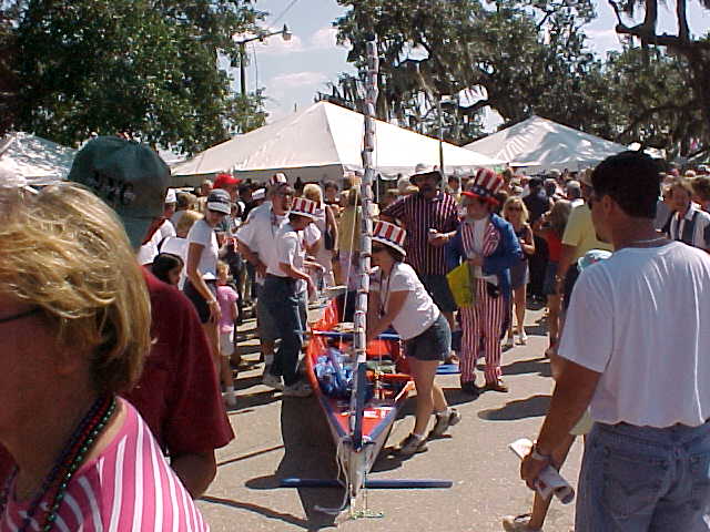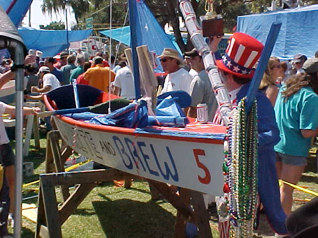| Had a great time today. Very good festival. Attached is a sampling of the activities. The Quick and Dirty BoatBuilding Contest does the building on Saturday and races them on Sunday. Thousands of people show up for beer drinking and enjoying the wood boats. |