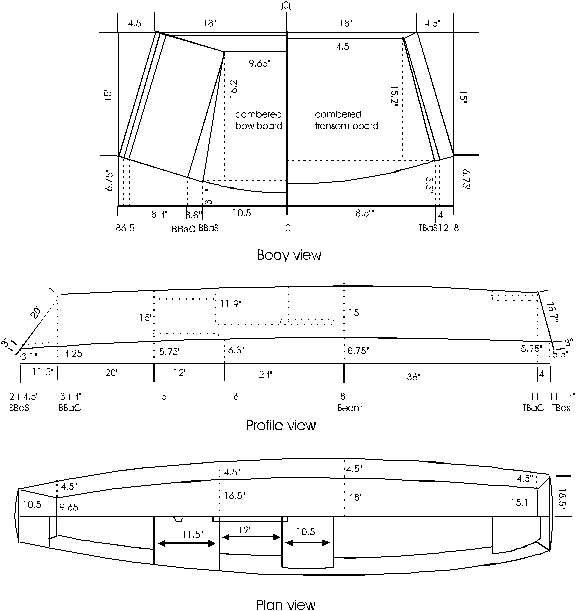 boards, and the straight sheer and chine lines of the expanded