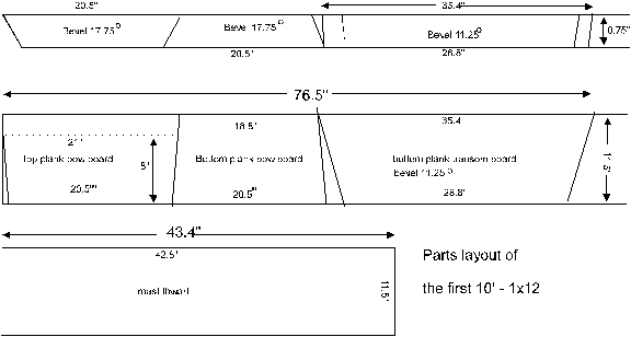 transom board is cut from the same 1x12 as the bow board.