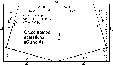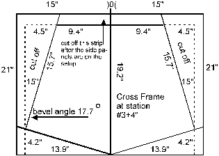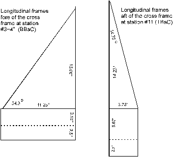 The bevel angle of the sides of the cross frames at stations #5,