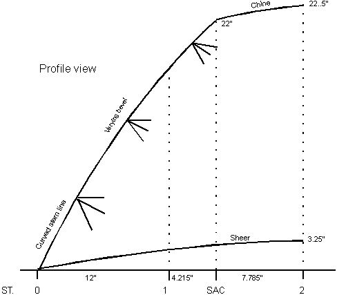 See figure 3-1. On the sheer line in the half-Body view of figure 3-3 that