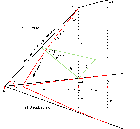 centerline is equal to the bevel angle of cross frame #2 (and #14), which