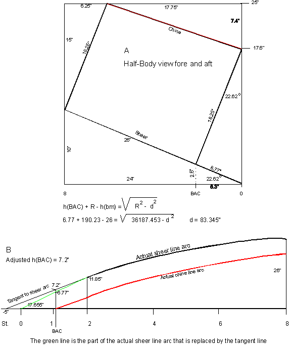 hSAC + (R - hBeam) = v(R2 - dsac2), or 8.46 + (190.23 - 26) = v(190.232 -