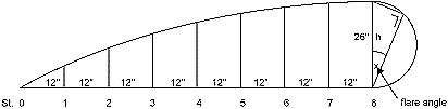 The bevel angle of the frames at each station is equal to the