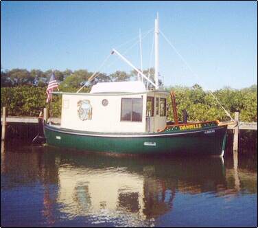 I/B Danielle has an 18 hp diesel, and she cruises at 6.2 knots,