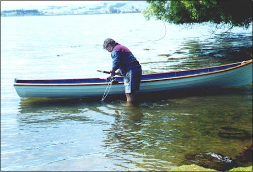 The boat carries weight well, even with Denny sitting in the stern