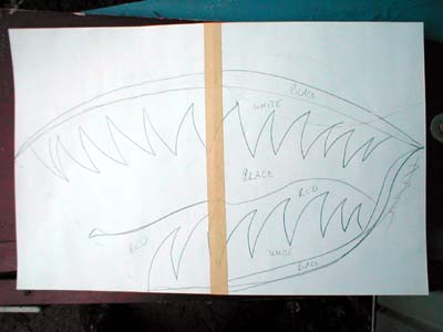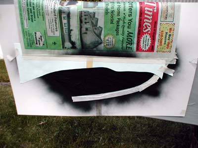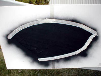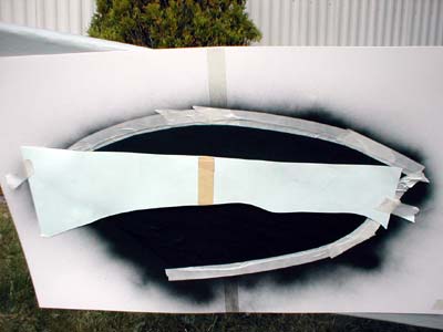 stencil at 2 corners with tape on the boat at 90 degrees on 2 corners of