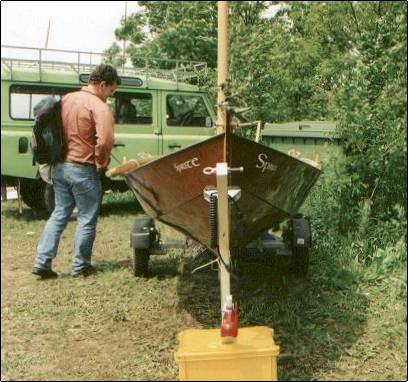 His Sharpy is a sailing canoe with a small rig, and a retractable