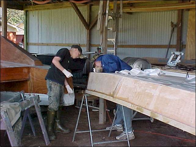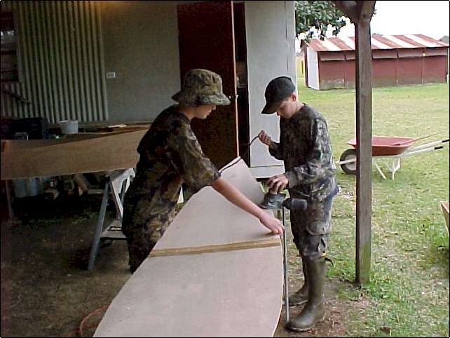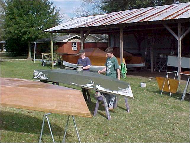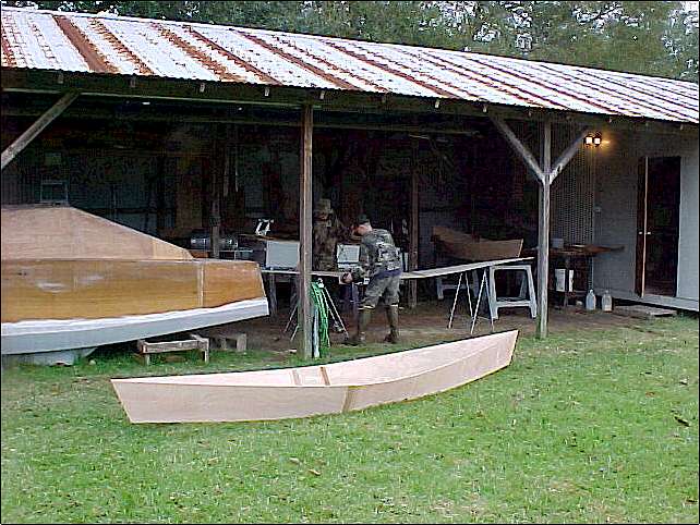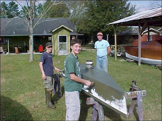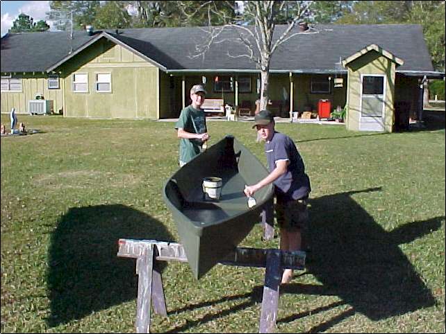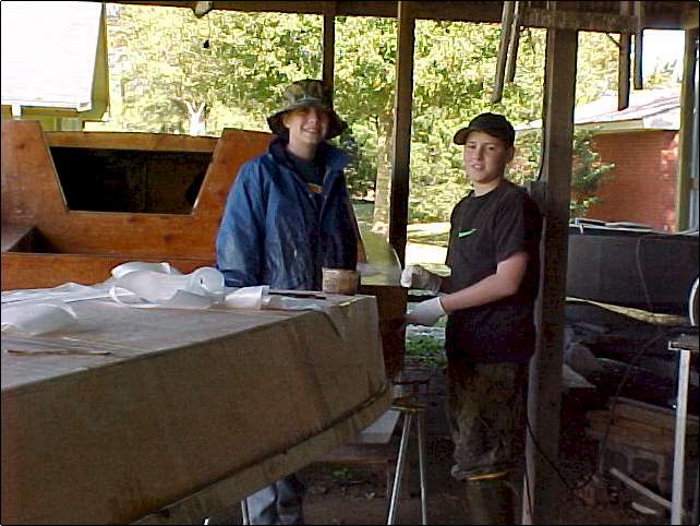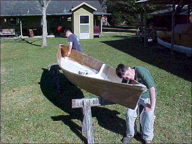 We made two pirogues over the weekend. Had a great time. (Aaron is my grandson, Mark is his buddy.) Click thumbnails to enlarge.