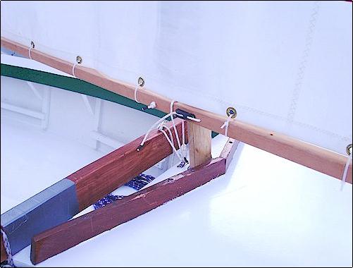 next to the mast with a parrel, or line which I run to jam cleat. This