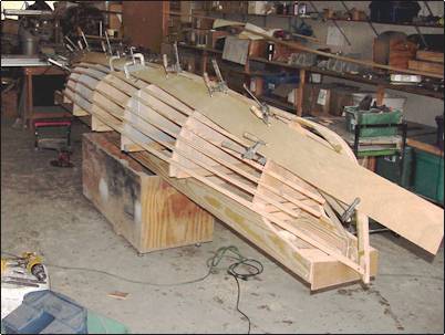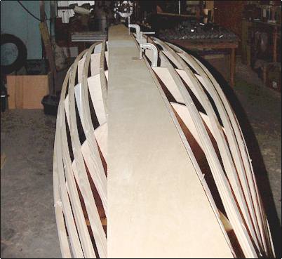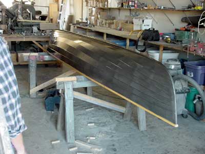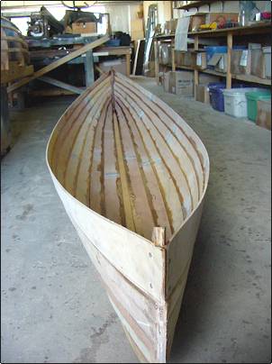 | Finally, all the strakes are glued and the 'husk' is