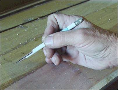 | This shot shows how I ground a regular wood pencil to