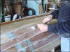 | Here I am spiling (marking) the third strake. You