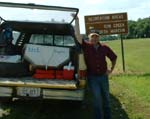 Birdwatcher behind his old green Chevy truck with his trademark