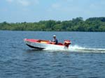 Lea sailed past us in his June Bug as we started the motor. Geeez!