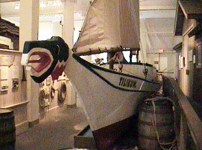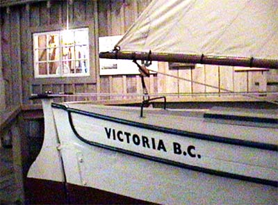 On a trip to Alaska in September, I passed through Victoria, British Columbia. I had been there to attend the Classic Boat Festival, but I had missed the Maritime Museum of British Columbia. Actually I hadn’t missed them, they were closed the day I was there. I had called the Museum the week before to inquire about viewing Trekka, which they now had in their possession. I was told that John Guzzwell's Trekka was stored in a warehouse, and I would not be able to see her. The following May I returned to Alaska via Victoria and decided to go to the Maritime Museum and see what chance I had of seeing Trekka this time. Two young men were on duty behind the counter of the gift-shop/ticket office and were busy selling souvenirs to visitors, so I decided to buy a ticket and checkout the museum exhibits and then return if Trekka was not on display and make an inquiry. The museum also holds Tilikum which is a modified decked cedar dugout canoe sailed by Captain John Claus Voss. After reading "Venturesome Voyages of Captain Voss" seeing the boat was quite a treat.