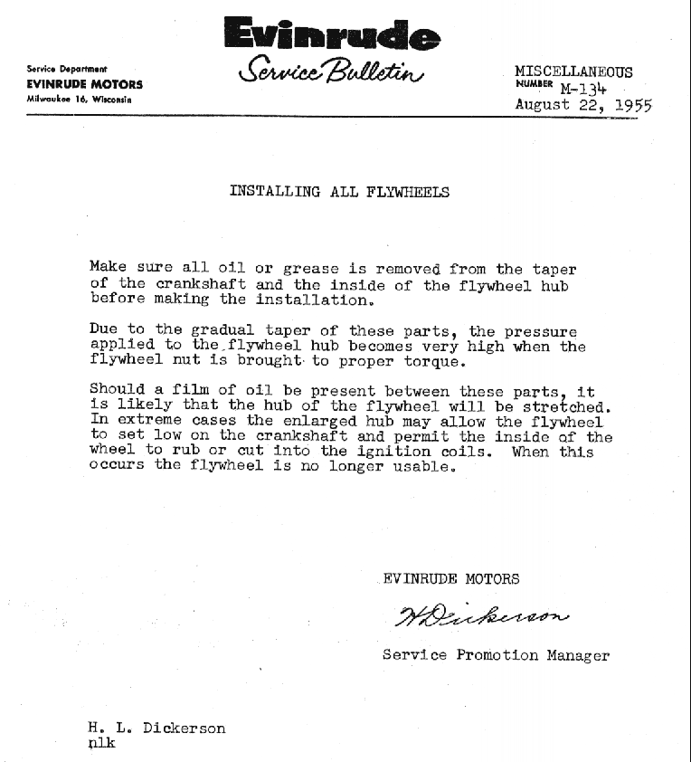 be properly Positioned before tightening-down the flywheel nut.