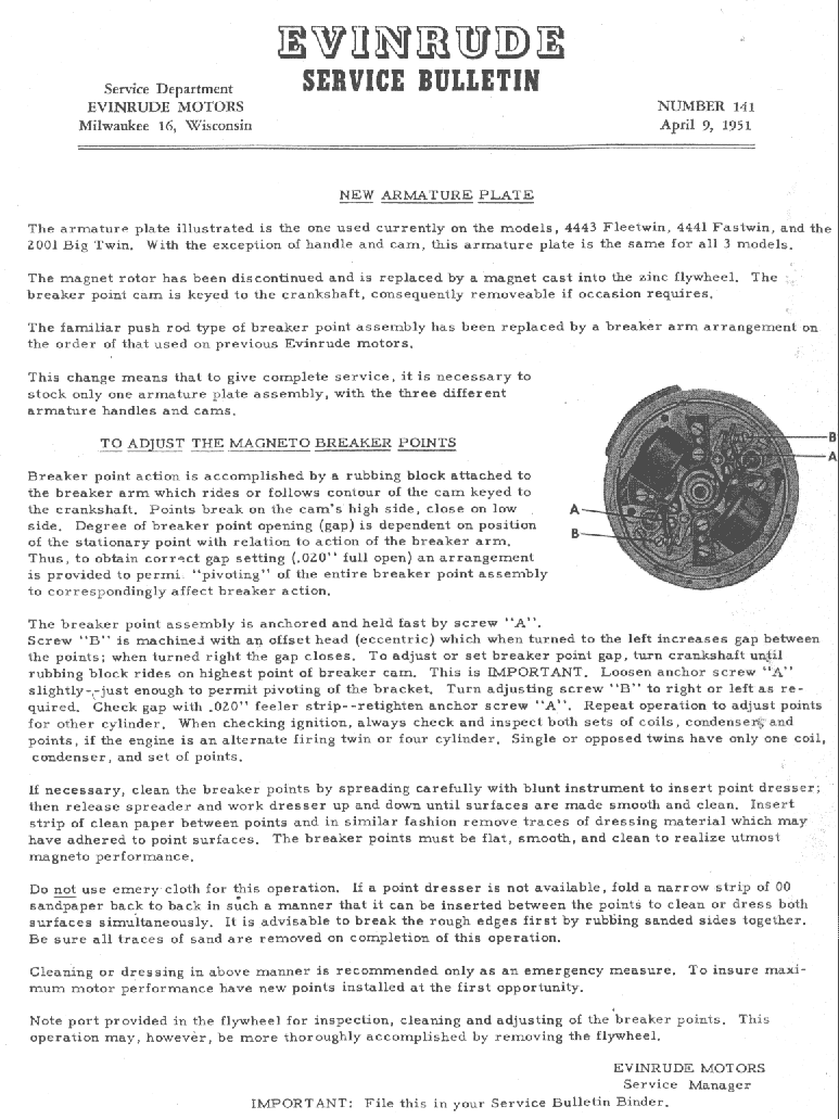 the electric starter. Read thoroughly the service bulletins posted