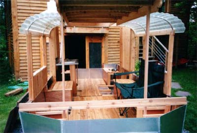 Sides of the roof are clear fiberglass corrugated panels fastened