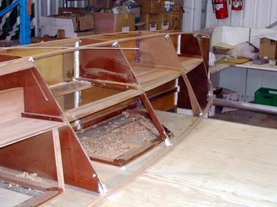The gunwale chine log under the bridgedeck, whose shape Jim is