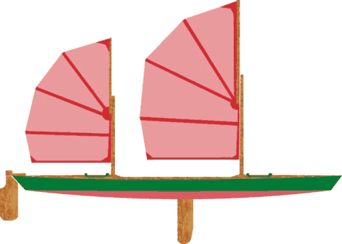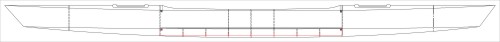 This is a sailing canoe with a difference, it has 5 watertight compartments and a reinforced mid section a 6' 6" long cockpit that you either paddle or row from. With the dagger board and rudder up it draws 4" fully laden. Fast under oars and fun to sail and with clear interior you can even sleep full length aboard, ideal expedition and camping boat. Great family project ! You provide the the 4 sheets of 4 or 6 mm and a single sheet of 8 or 9 mm marine or exterior WBP plywood some small section Spruce or Douglas fir for the stringers. The timber used for the building Jig will be used to make both sets of masts and spars. Drawings for battened fan sails are provided they can be made simply and cheaply using woven polyethelene.