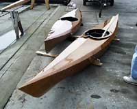 A pair of bright Pygmy kayaks built