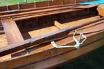 A mahogany double skiff with oars pivoted