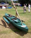 in bits and assembled on deck. A simple lateen sail provides