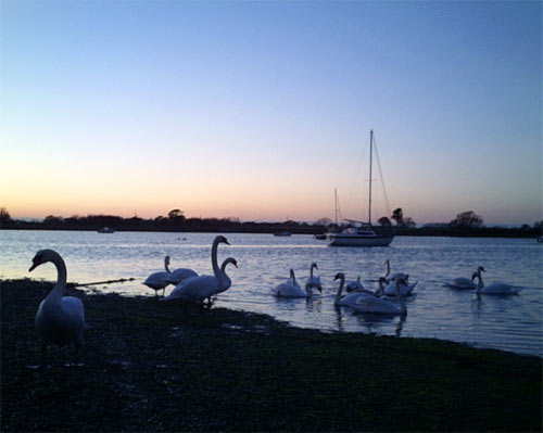 south coast with hardly anybody else around except for swans.