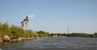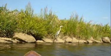 of the water, no talking) and drifting toward a Great Blue Heron.