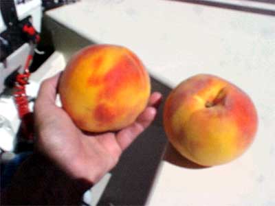 Cruised mostly downwind through narrow stretches of waterways with names like Old River, Connection Slough, and Holland Cut, as well as a few open areas of water that were once levied off riverbottom de-watered to become farmland "islands", but are now flooded due to levy breaks and known by names like Frank's Tract, Little Mandeville Island and Mildred Island. I stayed out of the big rivers, the San Joaquin and the Sacramento, leaving them to the motoryachts, the "Delta Destroyers", and the wake board crowd. Instead, I made my way through the smaller sloughs looking for that section of levy, that one special levy, with just enough room to sneak through the reeds to land a small boat. I won't tell you where it is, but if you find it and climb up you'll discover on the other side a couple of old broken-down peach trees. Old and broken they may be, but they're still producing some of the sweetest juiciest and this year the largest (over 4" diameter) tree ripened peaches you'll ever see in these parts. I only took two, leaving the rest for the few folks lucky enough to know about these trees...