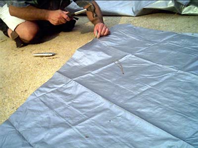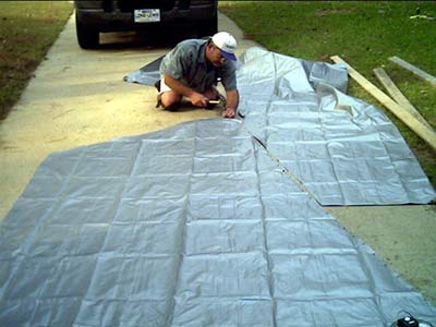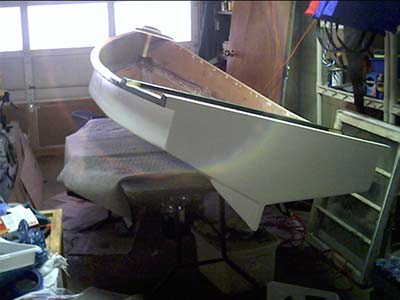 the Rustoleum on the Vamp's gunwales to cure, I made a sail