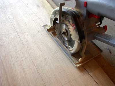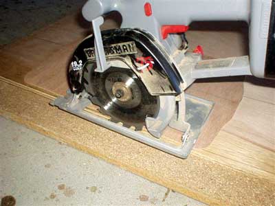 then dropping the blade onto the particle board. When you cut