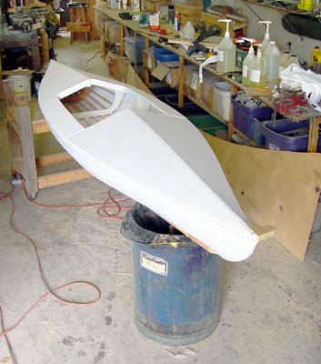Sandra got the skin on the kayak yesterday. She was not real sure how it would go, but I think she made a good job of it