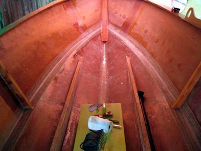 I finally finished filleting and taping up the chines. Three layers of tape, inside and out, will make this an extremely strong part of the boat. Up next will be filleting and taping the stringers. Those stringers are quite long so I expect this to take me the better part of a couple of weekends.