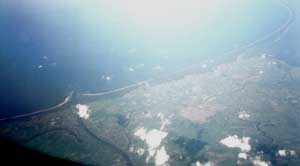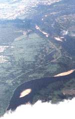 river near Warsaw (at right) through jet's window. I took my camera