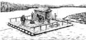winch mounted on a raft. The raft was harnessed to a log boom,