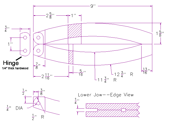 1-5/8" wide. Drill the pivot holes. Trace the shape of