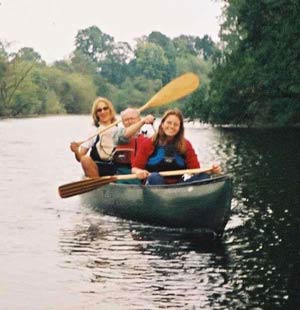After a couple of miles of constant attention from this swan, we sought refuge on the bank hoping that in the time it took us to have a barbeque it would lose interest. We noticed some heifers far away at the other side of the field, but as none of us fancied another run-in with the swan, decided to risk it.. "Watch out, they'll come and play with us soon" joked Richard. How right he was. With the canoes arranged around us and the sausages cooking nicely we soon became the centre of attention for a ring of Heifers, and one bull. This presented a problem as a few tens of tons of interested Beef could do rather a lot of damage to a ton of humans and their gear. The cows shortly became insufferable and in the best traditions of our Maritime isle we beat a hasty retreat to the water. Better the Swan you know, than the Bull you don't know!