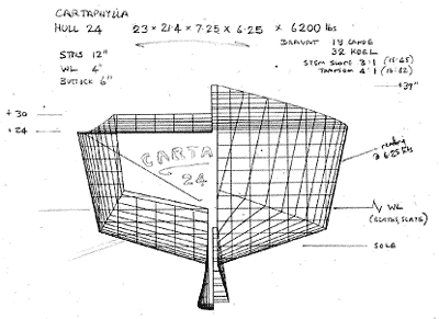 butt joins/scarfs along a single chine hull 23 feet on deck.