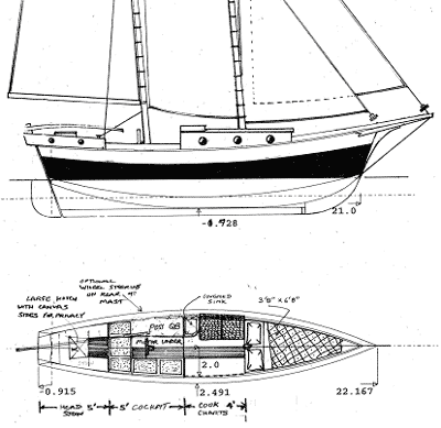 by cabin and poop-deck-lazarette. Her sail plan is pure trad