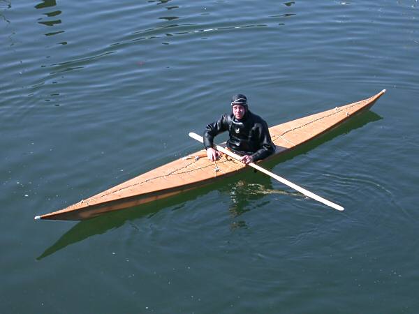 the cedar strip Rushton’s Sairy Gamp canoe he built for