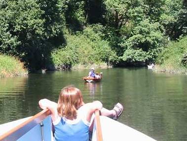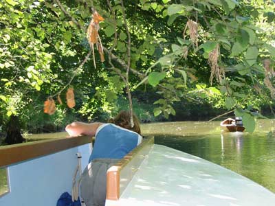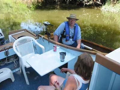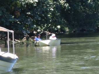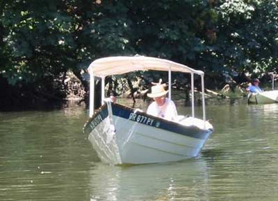 Below is a picture taken by John Kohnen of Bob Larking and his Mill Creek 13 (Bob has a sail rig for it, but didn't use it there). With his ultra shallow draft and maneuverability Bob was leading the Tour and was usually too far ahead for me to get any good pics of him. He was also able to venture further up the Creek and River than any of the rest of us.