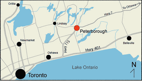 a half drive north east of Toronto (401 and 115) or about 3 hours