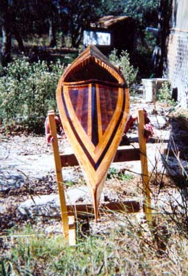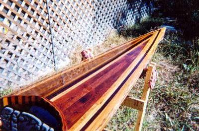 I finished this sea kayak. Used a plan from Nick Schade called “Great Auk”. 17' long. Took me about 350 hours. The hatch covers I got from you are mounted in the bulkheads, one behind the seat and one forward. I could not make myself cut holes in the decks for hatches.