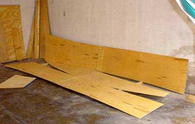 The three main pieces of the hull, bottom and laterals, ready to mount.