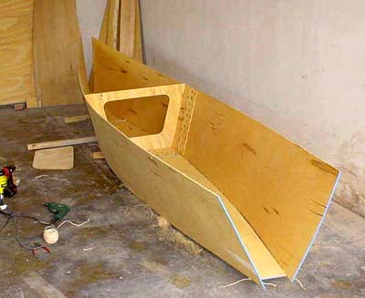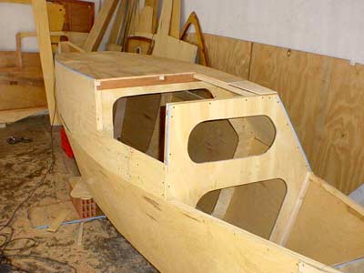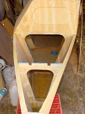 The two hulls together. The port hull has the openings cut for the cabin windows.